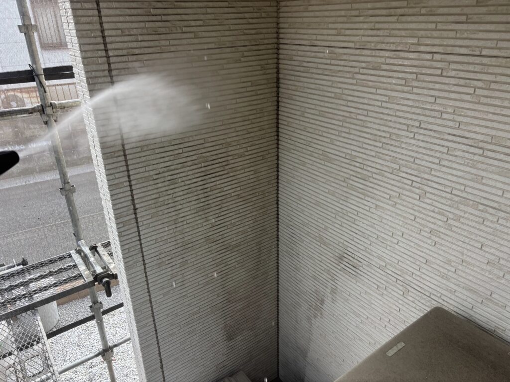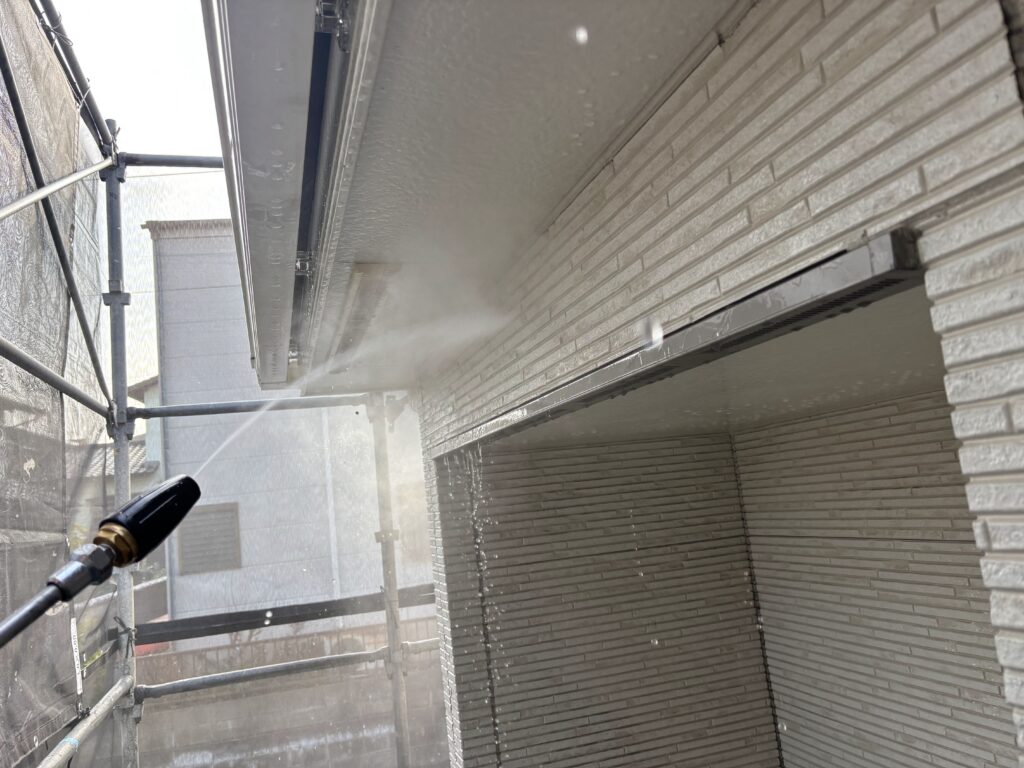 まずは、高圧洗浄でしっかり汚れを落とします。その後、養生を行い、塗装工事を開始します😊