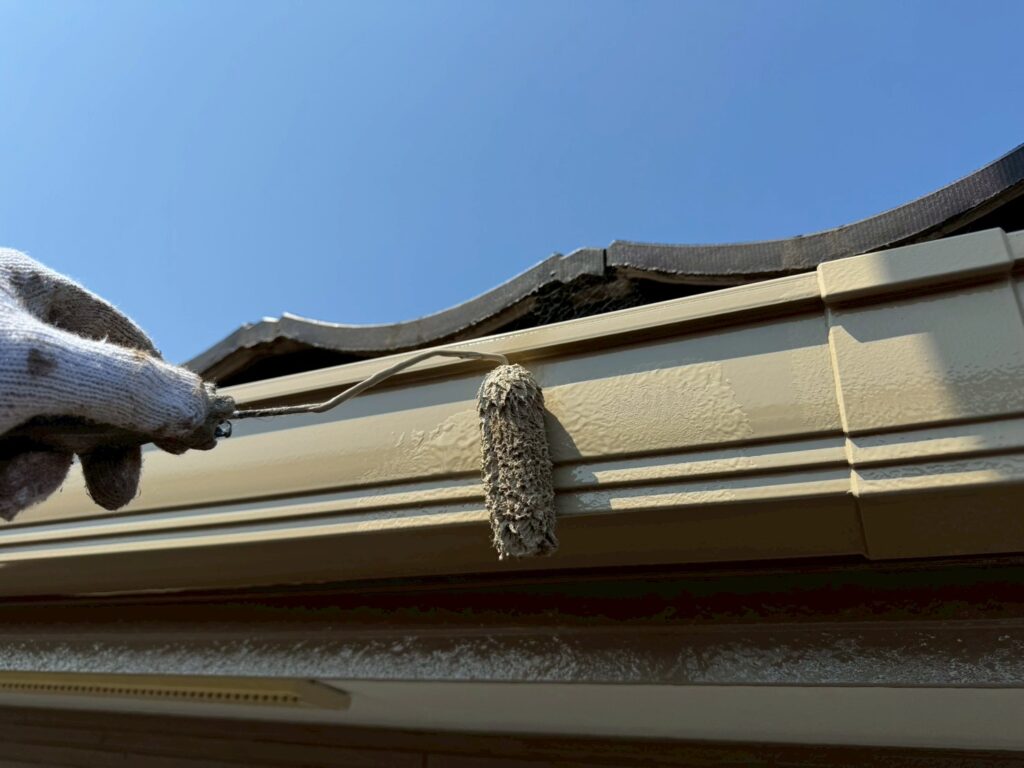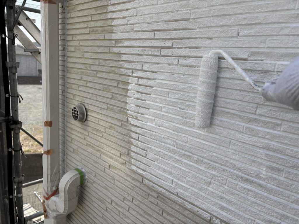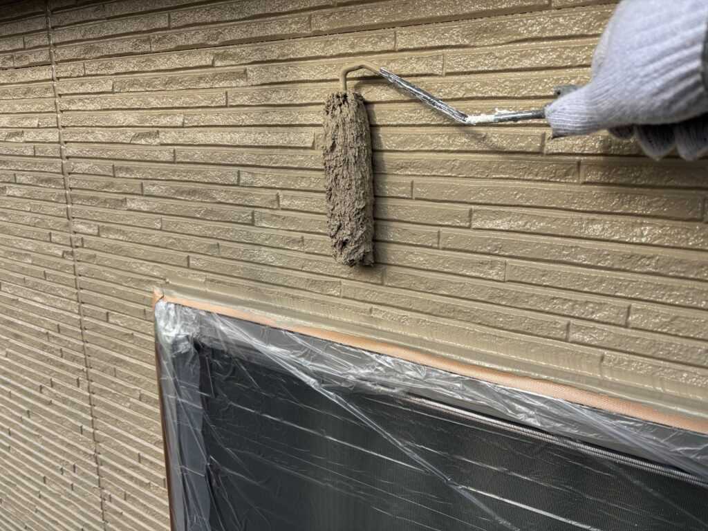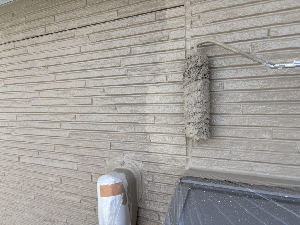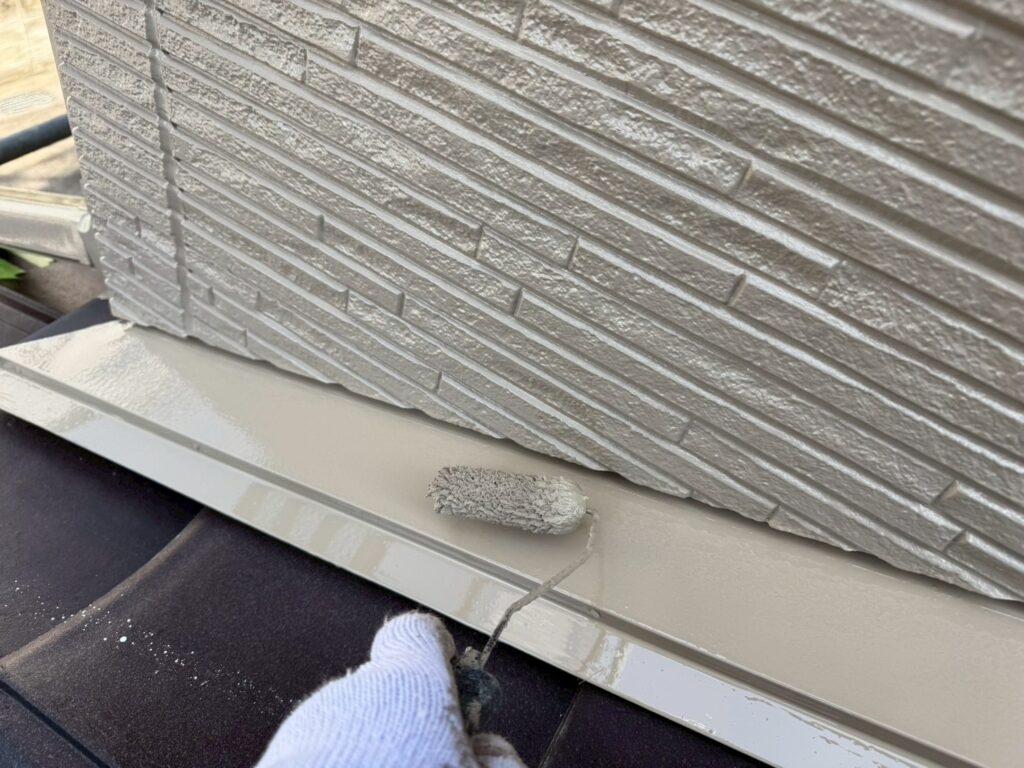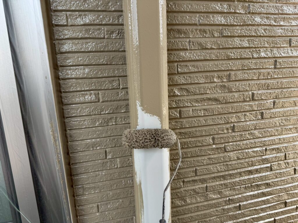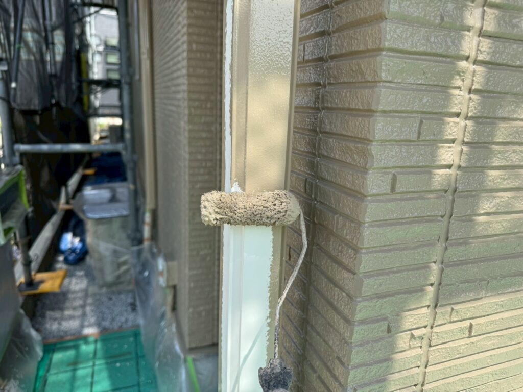 外壁のすべてのシーリングを撤去して、窓枠やドア周りはすべて増し打ちにて施工しています。シーリング工事が終わったら、外壁塗装→付帯部塗装を行います。今回は屋根塗装はなしです(塗装不要の屋根材のため)
