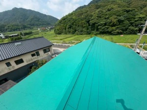 屋根の色を明るいグリーンにする事で大きく印象が変化しました。屋根や外壁ともにカラーも豊富に取り揃えております!